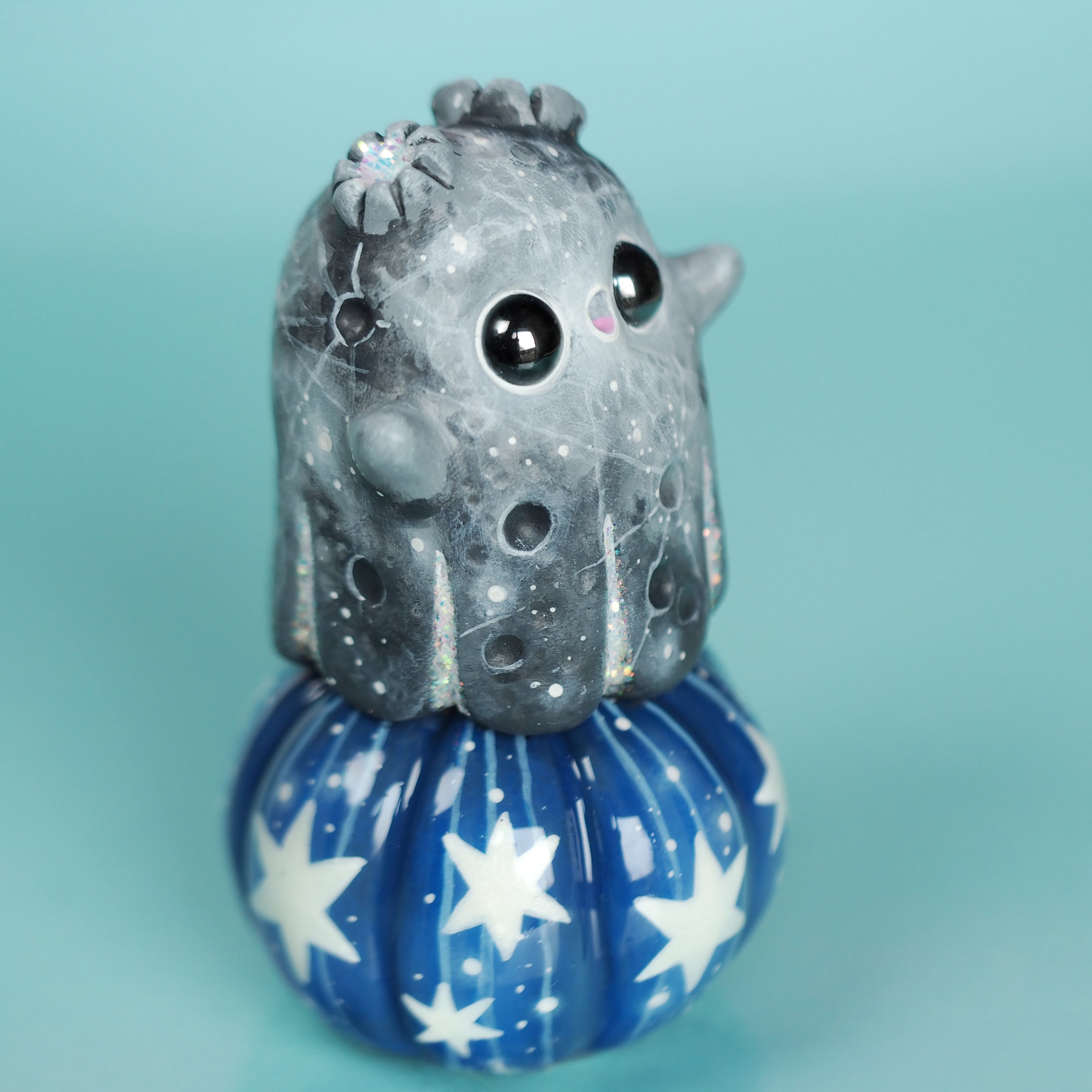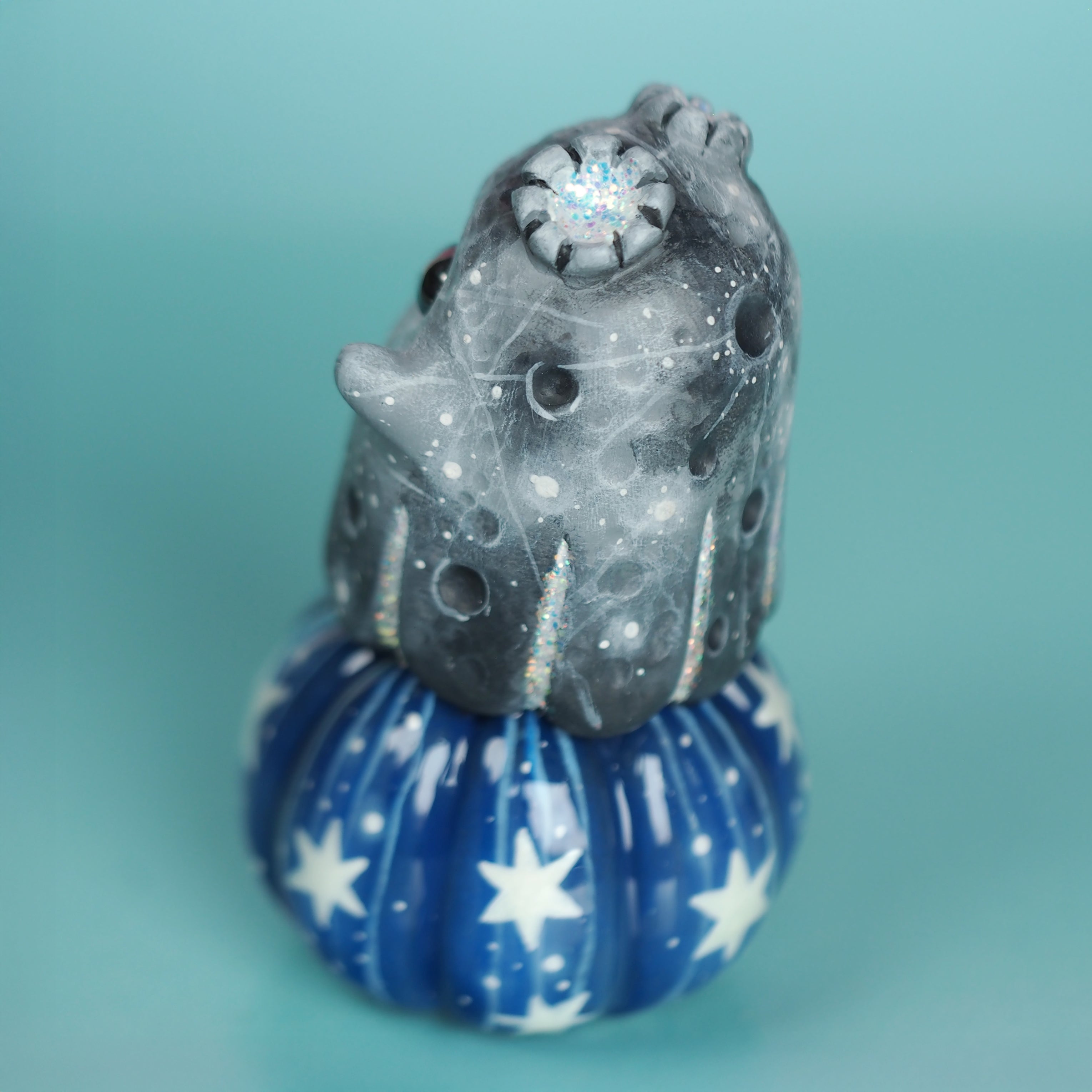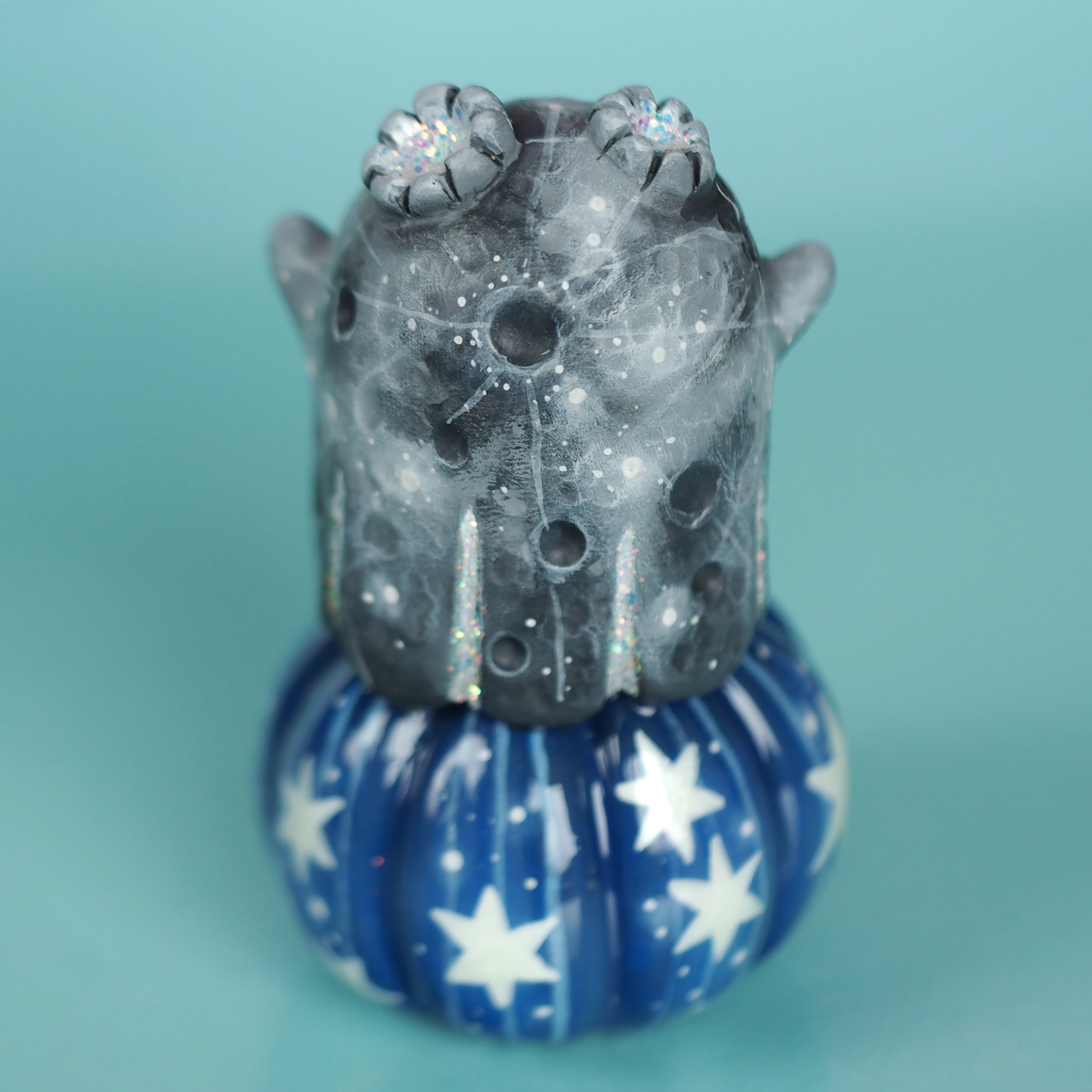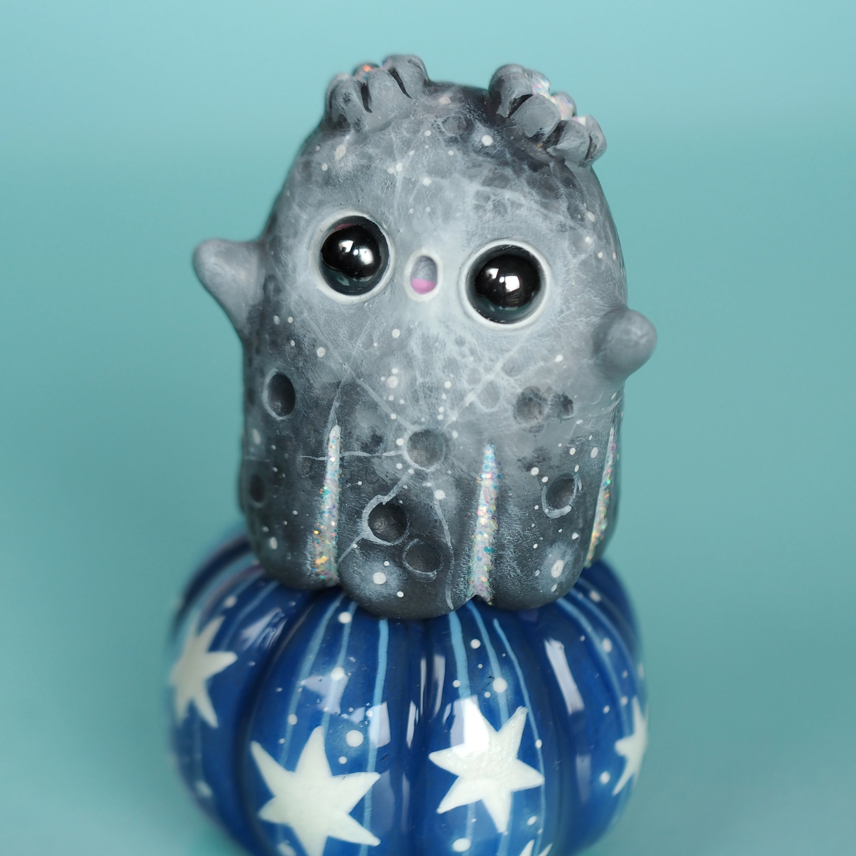 Luna on a Starry Pumpkin (Handmade Polymer Clay Sculpture)