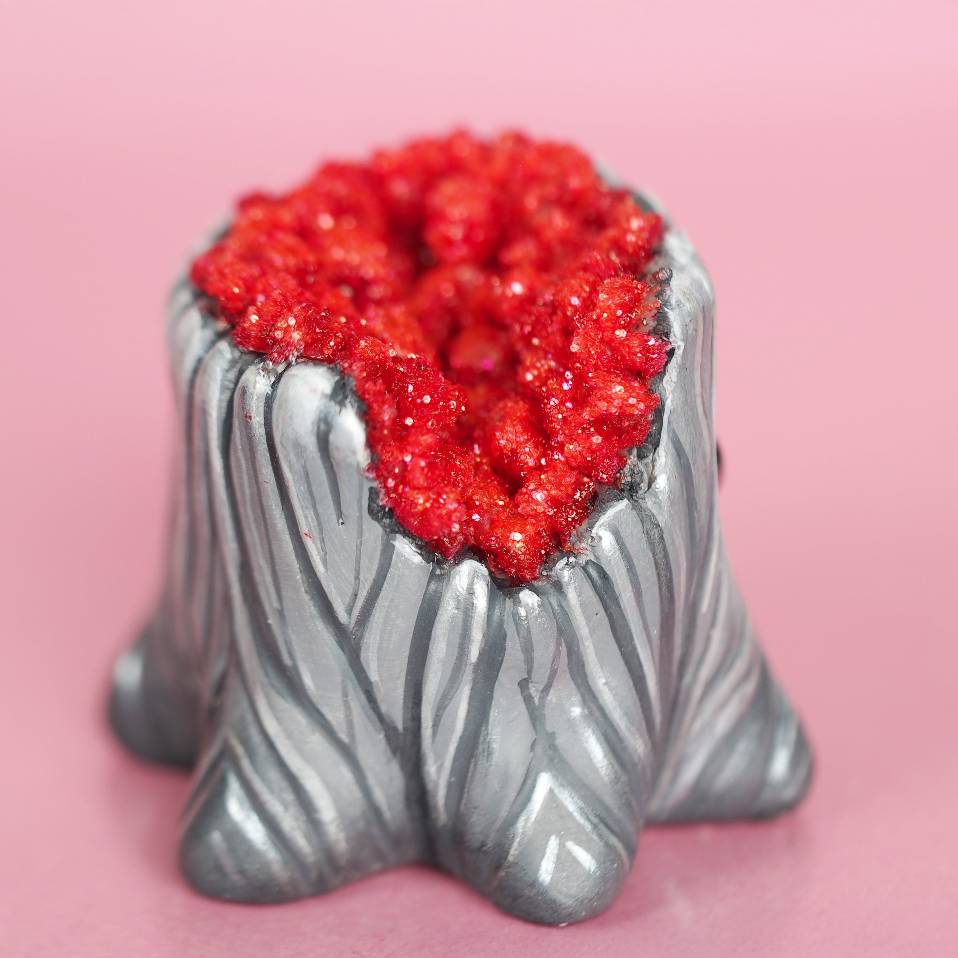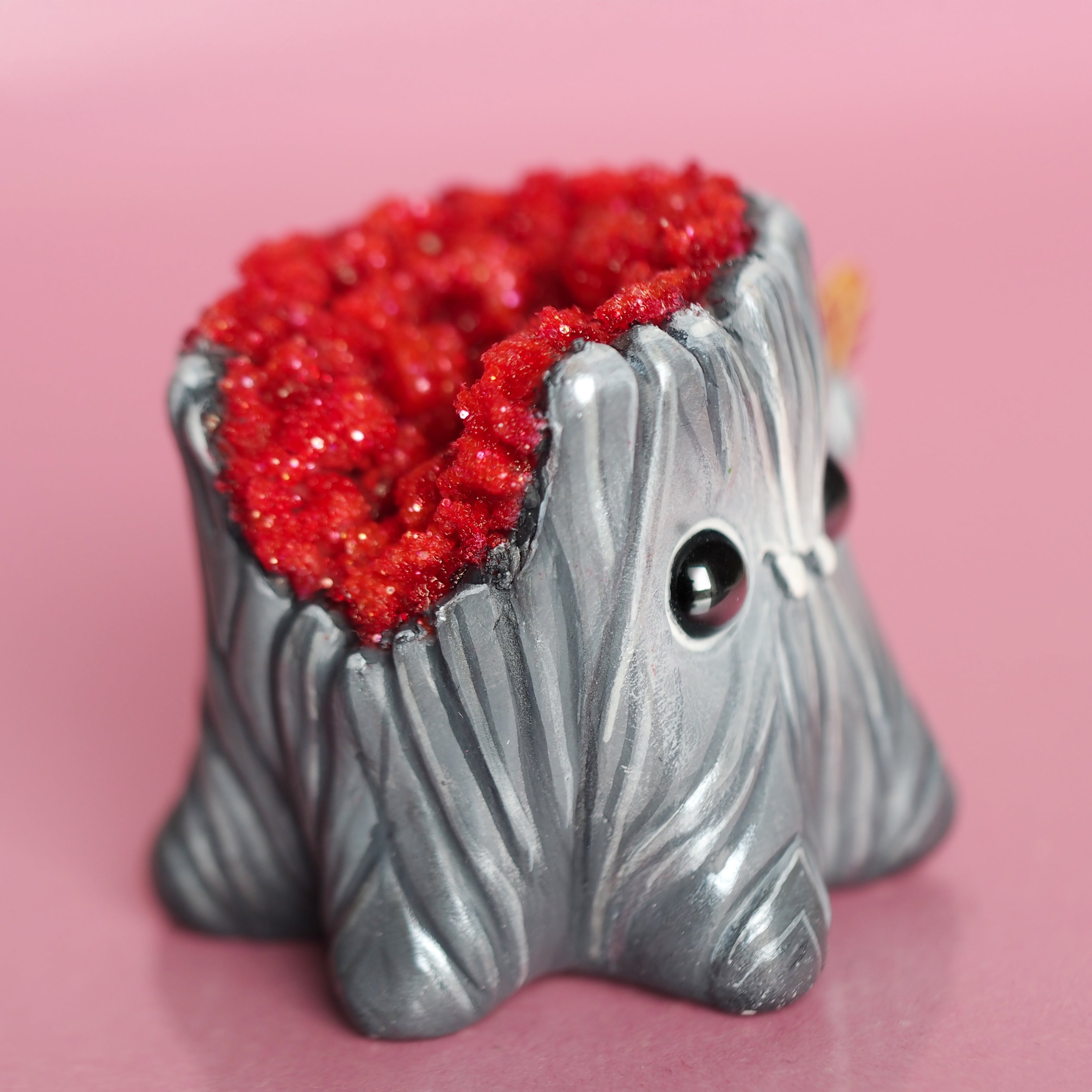 Stumplings are gentle caretakers of the forest, but this one’s a little different — this one bites! Just a tiny nibble, really, so small you won’t even notice. In return, it grows glittering crimson crystals deep inside its wooden heart. Little traces of every spirit that has passed by — turned into sparkling gems.
