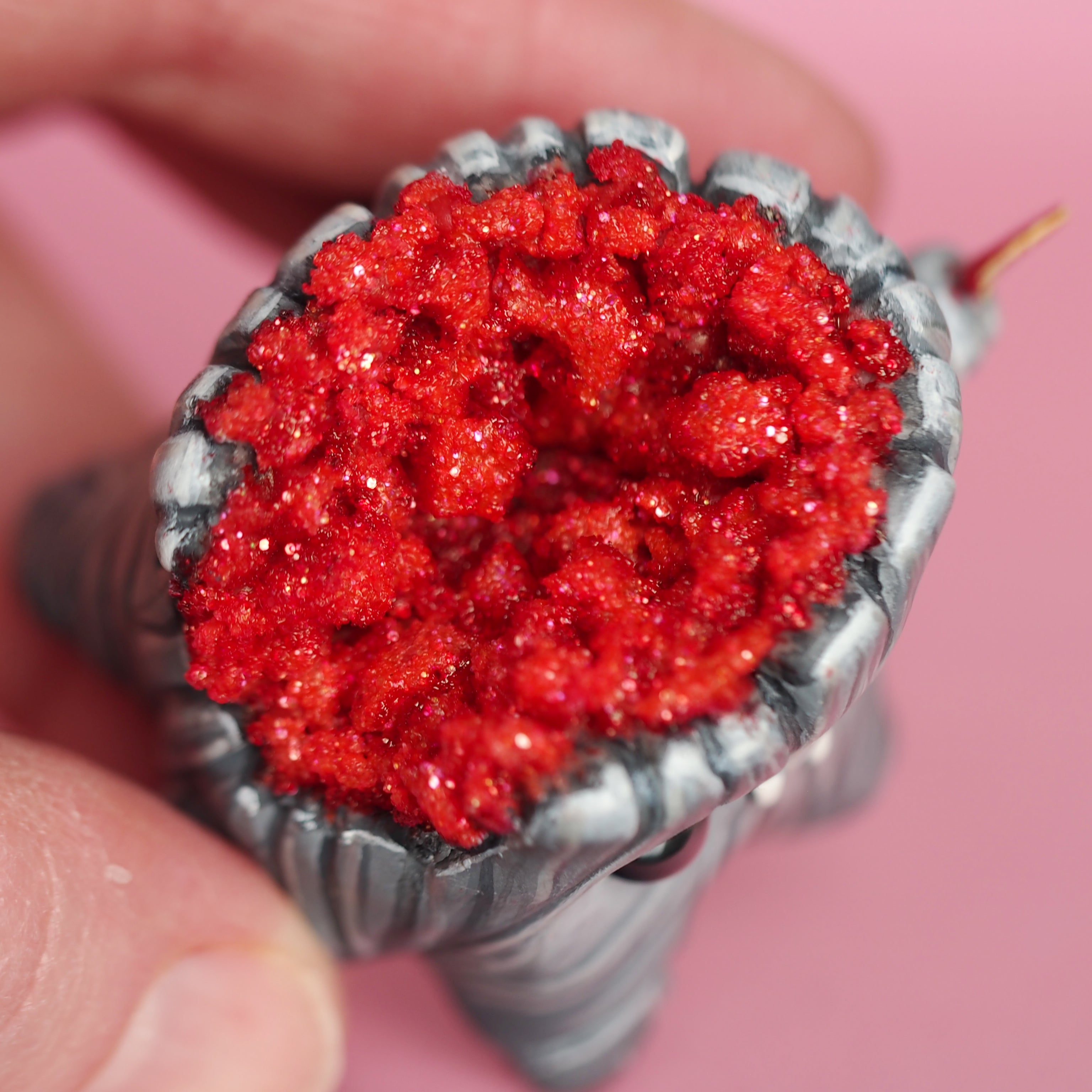 After curing, the piece was carefully hand-painted with acrylic paints, featuring plenty of tiny details and a touch of silver shimmer. This piece is signed by the artist.